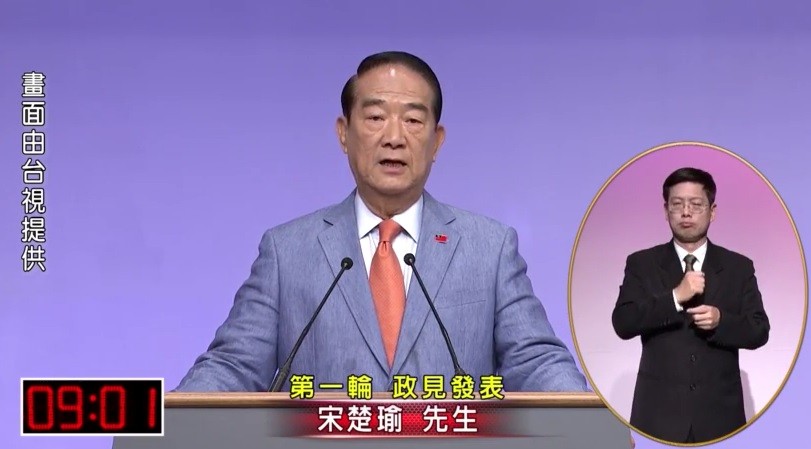 ▲第3場總統政見會第一階段,宋楚瑜第三位申論。(圖/台視提供)