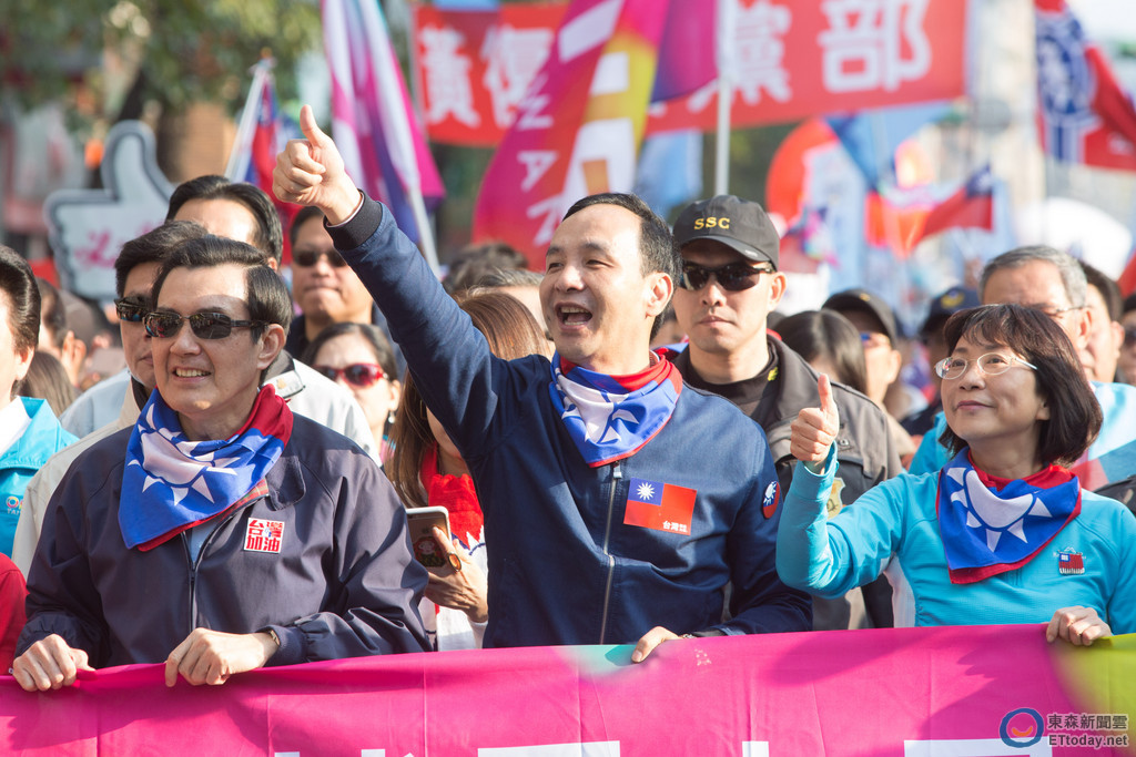 ▲馬英九、朱立倫、王如玄出席國民黨安定大遊行。(圖/記者季相儒攝)