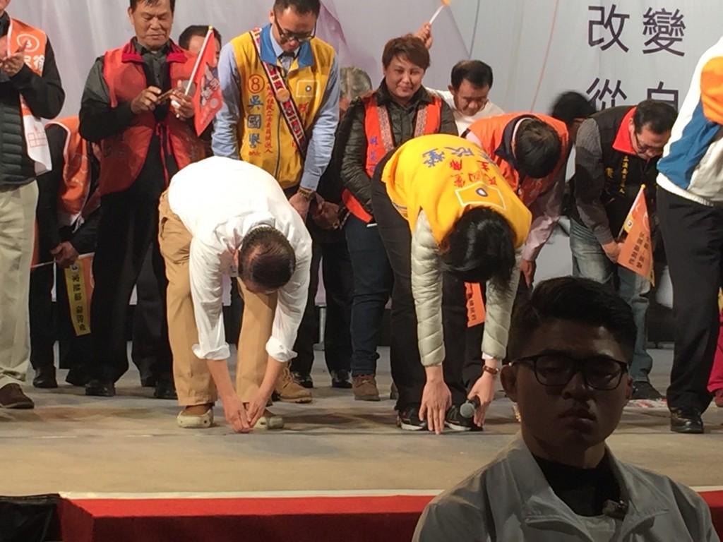 ▲宋楚瑜、徐欣瑩向支持者鞠躬。(圖/民國黨提供)