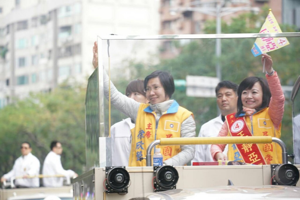 ▲徐欣瑩陪同民國黨立委候選人王靜亞掃街。(圖/民國黨提供)