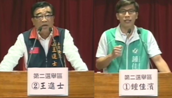第二選區:1號民進黨鍾佳濱、2號國民黨王進士