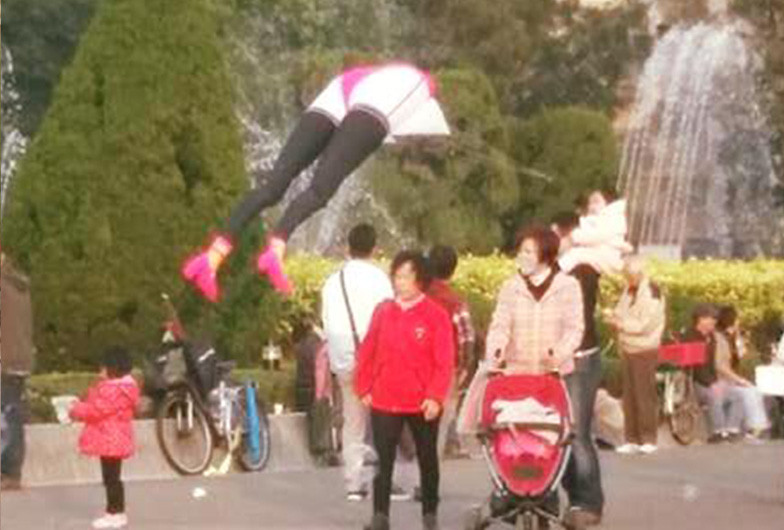 風箏造型無奇不有,不過「人腿風箏」還真是第一次看到,林姓民眾的姊姊帶姪女到國父紀念館玩,卻看見一雙腿在天空飛來飛去,還不停地踢,讓3歲姪女嚇得不敢接近,林姓民眾向記者表示,真的很可怕,「雙腳還在空中踢來踢去」,雖然被嚇了一跳,但造型很酷,想知道哪邊有賣。