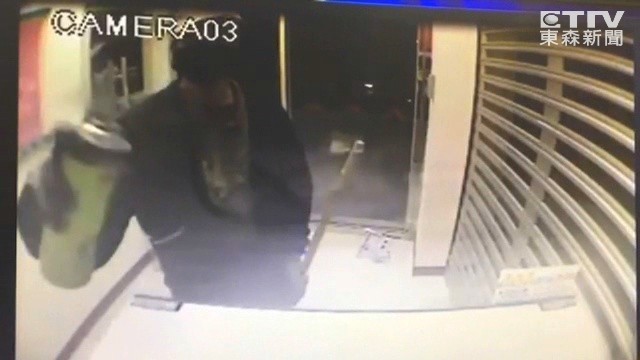 這名蒙面、戴棒球帽的男子,凌晨3點多進入自動提款機區塊,朝著監視器噴黑漆,還把監視器用棍棒移動角度,前後不到7分鐘就成功把機身未固定於建築物的簡易型自動提款機搬走,警方研判歹徒可能用3.5噸小貨車載運,銀行通報損失金額超過400萬元。