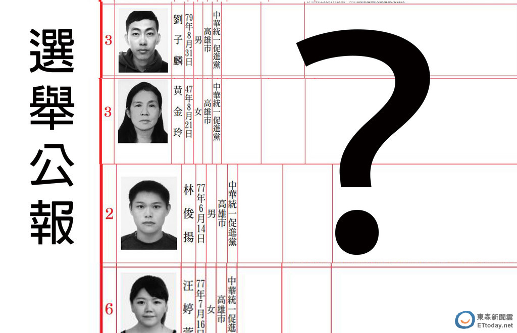 在高雄市第1、第2、第4和第8選區的選舉公報上,分別有幾位立委候選人只填上出生年月日和黨籍「中華統一促進黨」,讓人相當疑惑為何學、經歷與政見欄一片雪白。