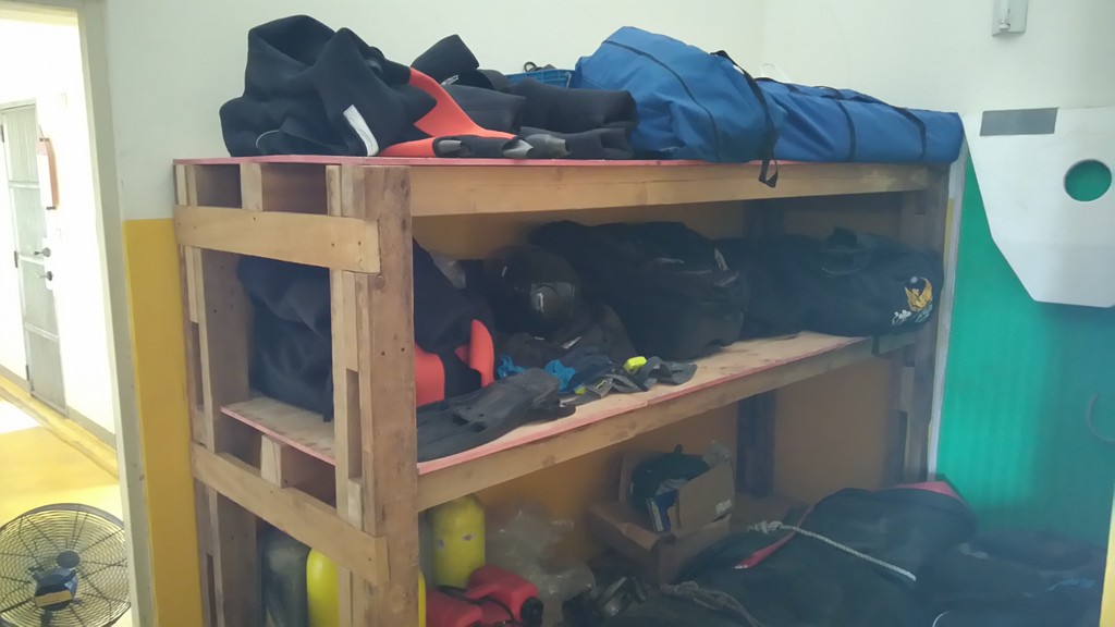 特搜中隊由於救災器材數量龐大且類別多元,加上駐地空間有限,造成擺放及保養的困難,才分發到特搜中隊不到半年的邱耀慶,立即運用所學,利用訓練結束後報廢但尚可使用的木料角材,搭配大木結構建築技術,打造出承重度強,堅固耐用不變形的救災器材櫃,解決器材擺放的棘手問題。