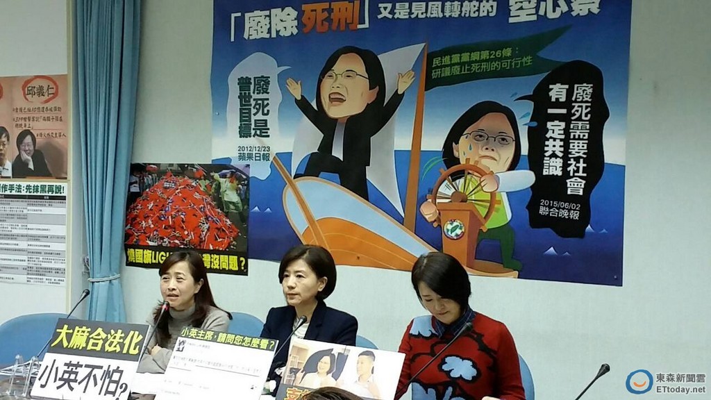 ▲國民黨要蔡英文說清對廢死、大麻合法化立場。(圖/記者賴映秀攝)