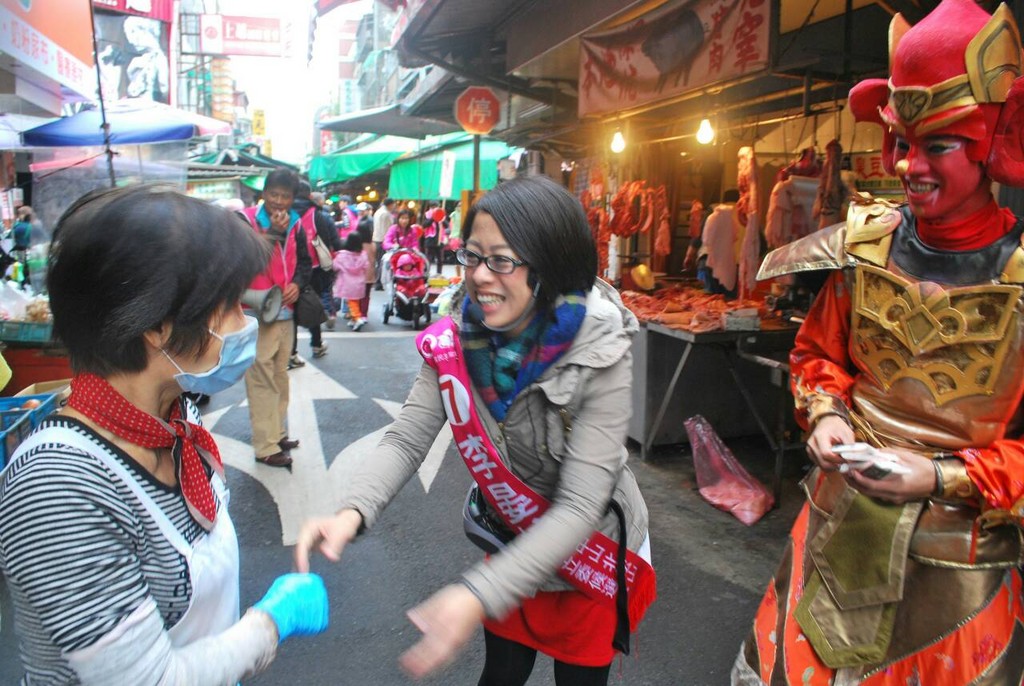 綠黨社會民主黨聯盟台北市中山、北松山立委候選人李晏榕12日繼續掃街行程,甚至找來千里眼跟順風耳助陣,她表示,祂們都是體察民情、傾聽民意的代表,這些是立委應該就要有的能力。