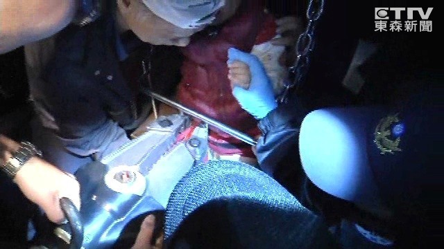 畫面中可以看到,廖小妹妹的右大腿卡在鞦韆的鐵條中間,只有5公分的寬度拔不出來,阿公拿手電筒,心疼在旁安撫,「因為天黑,妹妹沒有看清楚,腳伸錯地方就卡住,來不及拔出來。」和消防員討論,要用甚麼方式救人,試了很多辦法都沒用,最後決定用撐開器,不過巨大的引擎聲音卻把她嚇哭了。