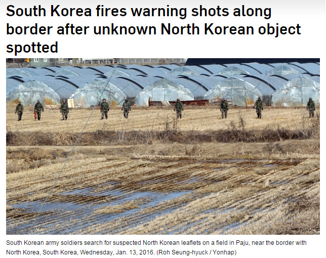 南韓軍方表示,13日有一「不明飛行物體」飛到首爾以北約47公里處、都羅山軍事觀察站附近,軍方在發現後,隨即鳴約20槍示警,該物體隨即飛回南北韓邊界。研判應為屬北韓之無人機。