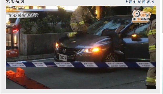 根據《太陽報》報導,12日下午5點多,華人置業集團附屬公司一輛七人座轎車行經灣仔駱克道,忽然「嘭」一聲巨響,一名男子從天而降,幾乎垂直插穿車頭擋風玻璃,黃姓男乘客左大腿被男子壓傷,麥姓男駕駛手部也被玻璃碎片濺中流血。