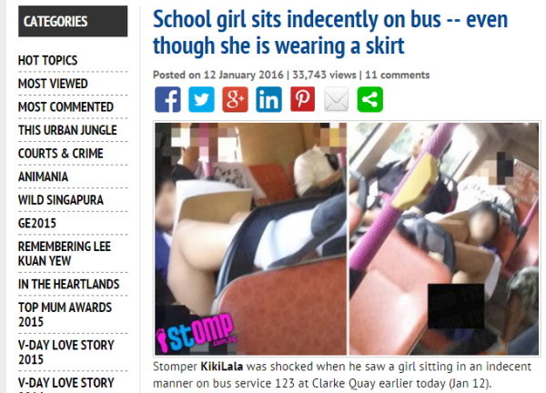 根據新加坡媒體《STOMP》報導,一名網友向他們爆料,12日他在克拉碼頭搭公車時,看到一名女學生,竟然大剌剌地將雙腿高高地翹在前座的椅背上,完全忘了自己還穿著裙子,裙底風光就被人看光光。