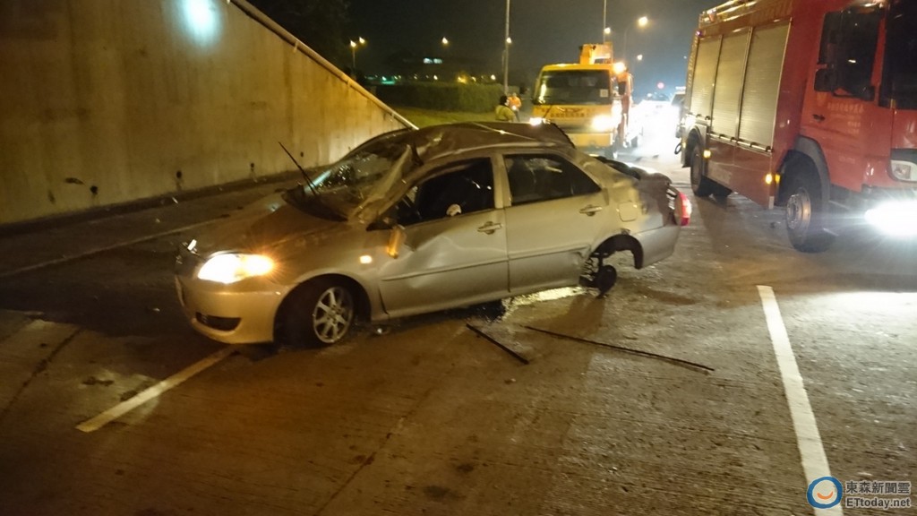 嘉義市政府消防局15日凌晨3時41分接獲報案,得知北港路靠近中山高速公路下發生車禍,第一消防大隊德安分隊到場後,發現為1輛自小客車疑似夜間視線不佳,再加上車速過快,車子擦撞高速公路邊坡路基造成車子受損,現場玻璃油漬散落一地,左後輪脫落。