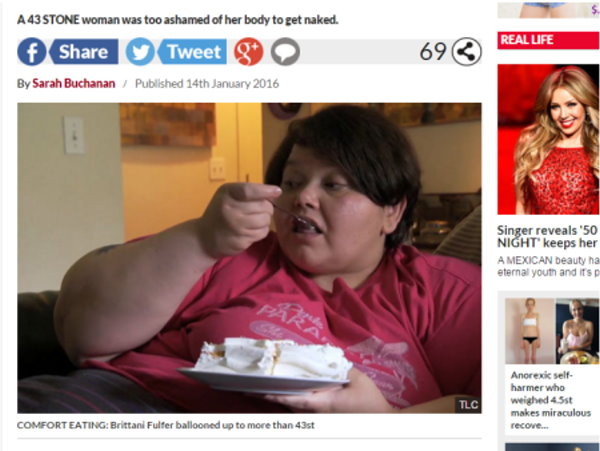 根據英國《每日星報》(Daily Star)報導,32歲的芙佛(Brittani Fulfer),她在5歲時曾遭到親戚性侵,導致在她的內心留下極深的陰影,為了排解壓力,芙佛長期以來就靠著吃東西來紓壓,最後變成了常態。