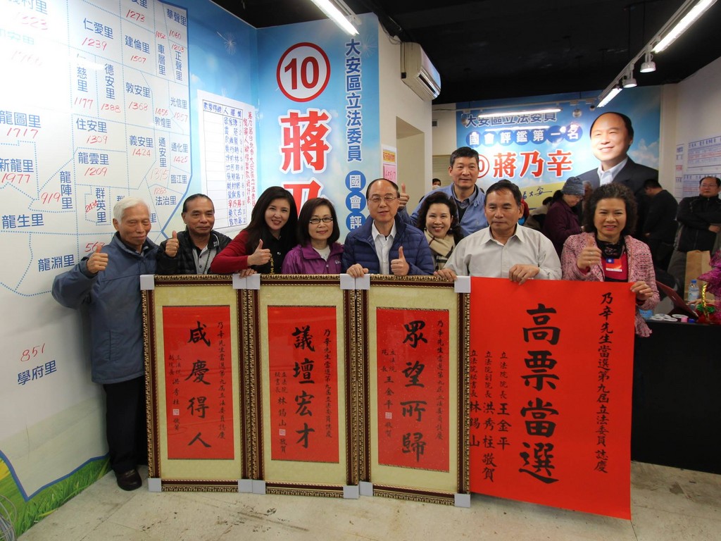 台北市第六選區為大安區,是台北市人口最多的行政區,被視為藍營票倉,蔣乃辛在大安區深耕多年,在教育等議題都是立法院的帶頭者。他稍早到總部宣布當選時表示,「這次勝利是大家的,是大安區所有選民共同的」,未來會比過去努力、更善盡責任,傾聽民意。