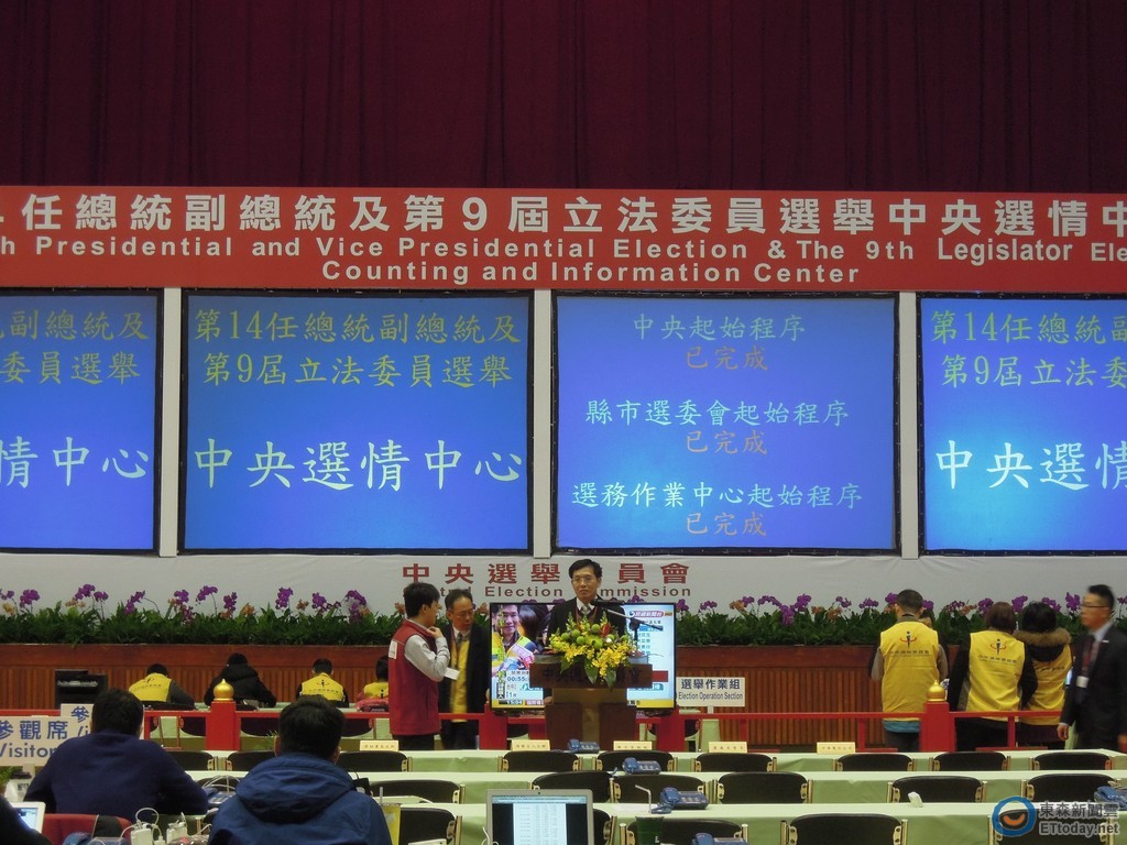 ▼中選會晚間9點半公布台中選區得票數。(圖/記者蕭玗欣攝)