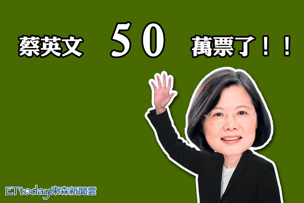 民進黨總統候選人蔡英文目前得票數已破50萬,領先國民黨朱立倫與親民黨宋楚瑜。