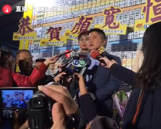 ▲顏寬恒延續家族勢力,自行宣布當選後在臉書直播。(圖/取自顏寬恒臉書/下同)