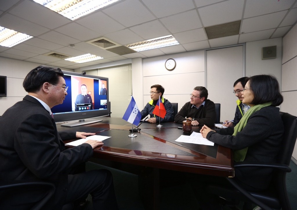 ▲宏都拉斯總統葉南德茲透過視訊恭賀蔡英文當選。(圖/民進黨提供)