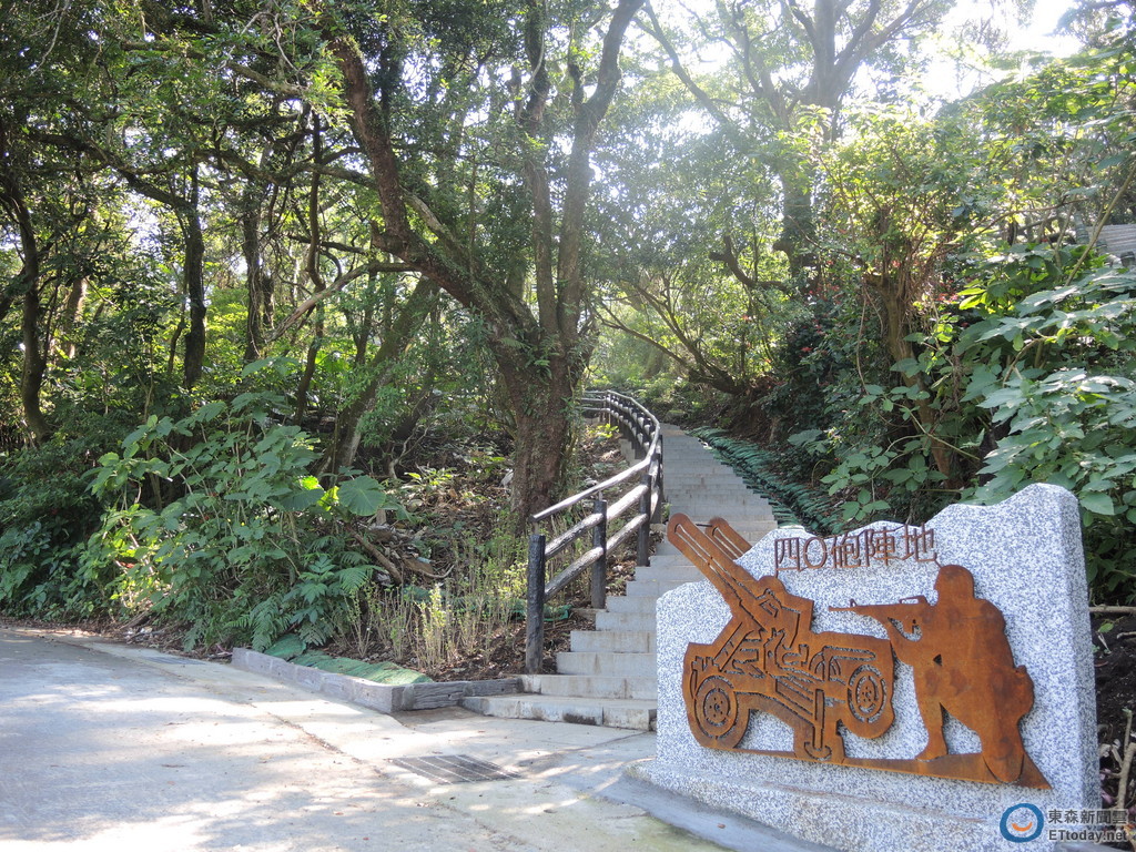 陽明山第二停車場杜鵑茶花園附近,有一處湮沒於草叢中、荒廢將近60年的「四O砲陣地」,經台北市政府工務局大地工程處整修,揭開了陽明山地區早期軍事設施神秘面紗,讓民眾可以緬懷當年高砲辛苦拖拉的歷史軌跡。
