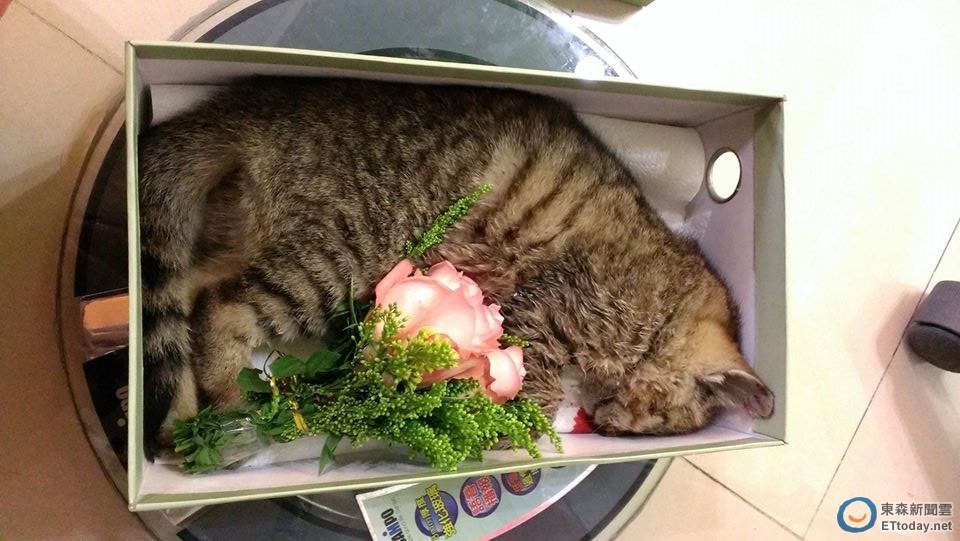 「小貓咪,阿姨現在要幫你放進鞋盒裡喔。」原PO隔著塑膠袋,小心翼翼地將牠冰冷僵硬的身軀放入盒中,準備送往寵物診所火化。途中,她還繞去鮮花店,買了一朵粉紅色玫瑰,「我要這小傢伙身邊都有花香繚繞」。