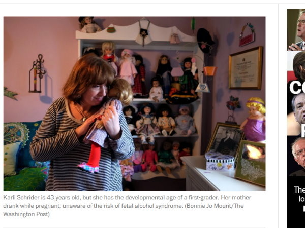 根據《華盛頓郵報》(Washington Post)報導,米契兒(Kathy Mitchell)在16歲時懷了女兒卡莉(Karli Schrider),但米契兒在懷孕期間還是照樣喝酒,結果導致卡莉受到胎兒酒精症候群(Fetal Alcohol Syndrome Disorder,簡稱FASD)的影響,她的心智發展年齡卻只有到小學一年級生的程度而已。