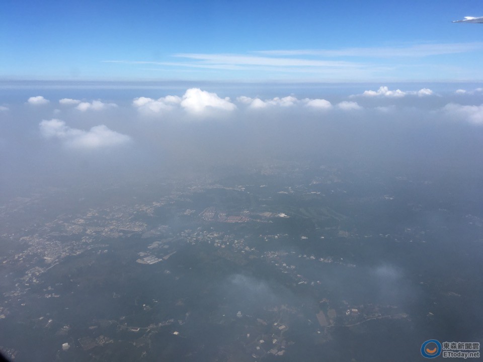 ▲空汙看得見!去年全台空品最差第一名的雲林,在霾害嚴重時,從平地望見的藍天,加上了霧霾的顏色。(圖/吳松霖提供)