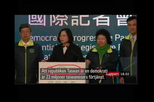 2016總統大選,民進黨取得完全執政,世界各國媒體紛紛報導,然而有網友提供了瑞典國家電視台的報導畫面,在蔡英文當選的國際記者會的標題上寫道「….republiken Taiwan….」(台灣共和國),令許多網友興奮。