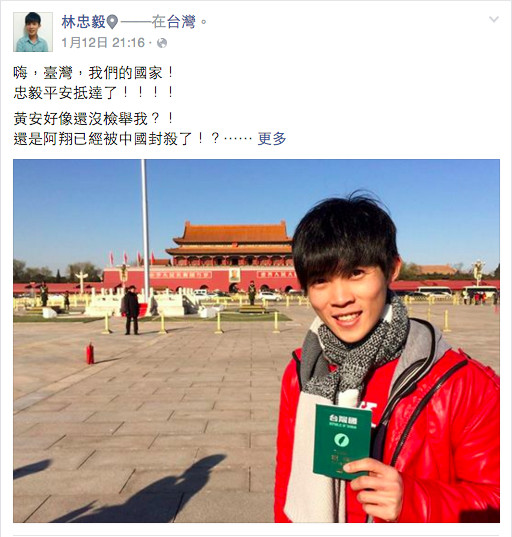 林忠毅12日在臉書PO出一張手持台灣國護照、站在天安門前的照片,還說「黃安好像還沒檢舉我?」,引起大陸網友討論並肉搜,後來發現他是2015年江蘇南京大學的交換生。對此,教育部長吳思華還公開呼籲要在大陸留學的台灣學生「入境隨俗」,保持基本的禮儀。
