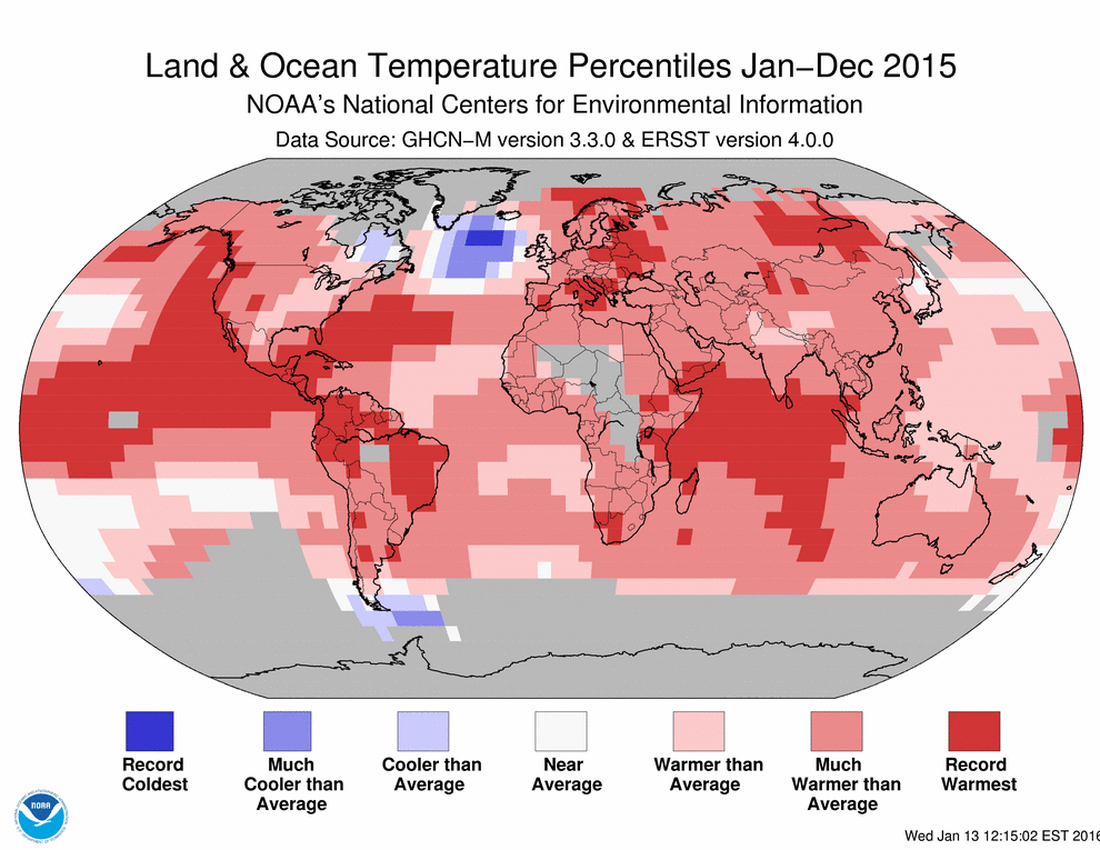 ▲美國國家海洋暨大氣總署公布的數據顯示,2015年是有史以來最熱的一年。(圖/翻攝自NOAA網站)