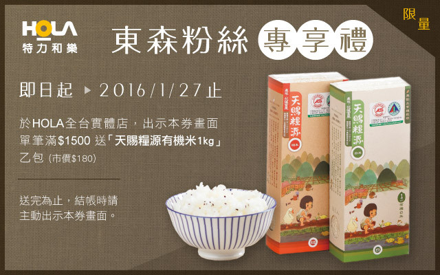▼東森粉絲出示畫面,即享滿1500元送有機米優惠。