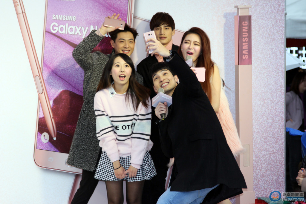 11 度低溫,戶外忽大忽小的下著雨,這是「霸王寒流」來襲前的台北。三創生活園區的戶外,卻擠滿上百位身著粉色雨衣的熱情粉絲們,原來是為了一賭 Galaxy Note 5 粉紅大使 SpeXial 風采,而為宣傳 Galaxy Note 5 粉色新機,SpeXial 現身與粉絲吹起粉紅泡泡,自拍、餵食與壁咚等親密互動通通來,讓粉絲幾乎陷入瘋狂,寒流都不寒流了!