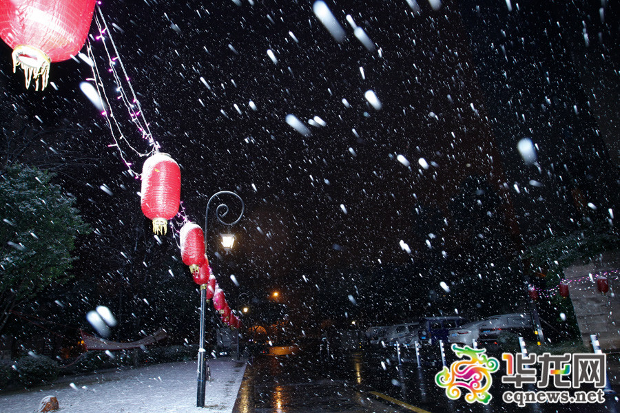 據《中新網》報導,重慶主城一大早就積雪,渝北區回興街邊路燈下有2到3名路人,藉著燈光和飄雪合影;在江北觀音橋商業區慶祝這場雪之盛宴的人更多;「不夜城」九街上的路人也紛紛掏出手機拍燈光下的雪花。