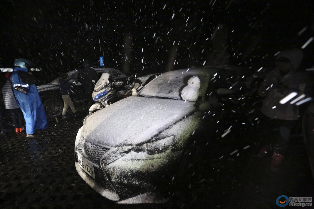 ▲陽明山23日晚間開始下雪。(圖/記者黃克翔攝,下同)