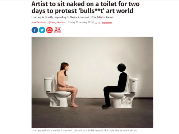 美國一名女藝術家、同時也是精神治療師的列薇(Lisa Levy),她將在本月底舉辦一場藝術展覽,但她呈現的方式是「全裸坐在馬桶上2天」。至於為何要這樣做?她說「抗議這社會的不公平」。