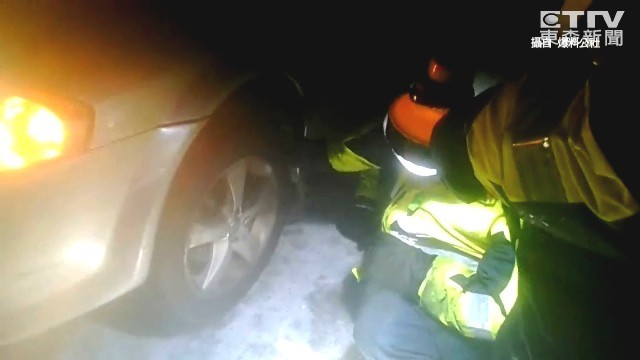寒流來襲,宜蘭太平山夜晚溫度降到零下5度,路面幾乎都結冰,許多車輛因打滑或是雪鏈卡進輪軸而受困,但太平山派出所3位員警不畏寒冷天氣、趴在雪地上幫忙修車,讓民眾非常感動。
