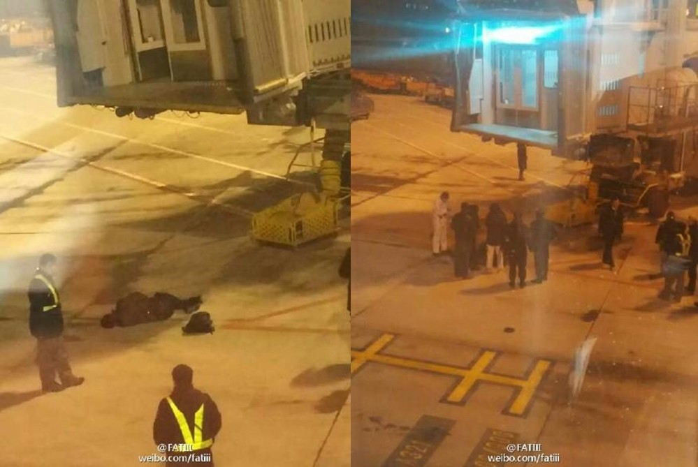 據《揚子晚報》報導,現場工作人員還來不及阻止,該名男旅客就衝了過去,但飛機早就已經緩緩開走,讓男子撲了空,最後像跳樓一樣直接往地面撞。從照片看到男子摔到地上後,身體捲曲但不清楚受傷情況。事情分享到微博後,有網友質疑機場安全管理出了問題,「既然飛機已經駛離,為什麼門沒有關上?」也有人表示,不能理解男子怎麼通行的。