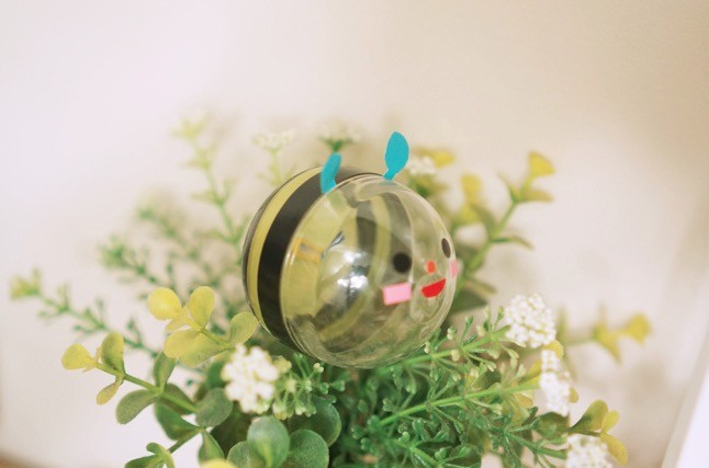 主題是蜜蜂,所以井兒使用的是黃色的扭蛋殼,貼上黑色的膠帶(這裡井兒事是使用絕緣膠帶哦)