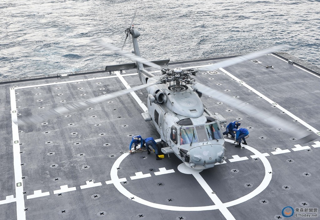 ▲S-70C反潛直升機進行起落艦、整補作業。(圖/記者李毓康攝)
