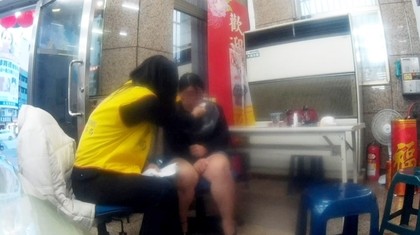 ▲仙人跳的張女落網後還不斷哭訴,志工在一旁安撫。(圖/高雄市警察局)