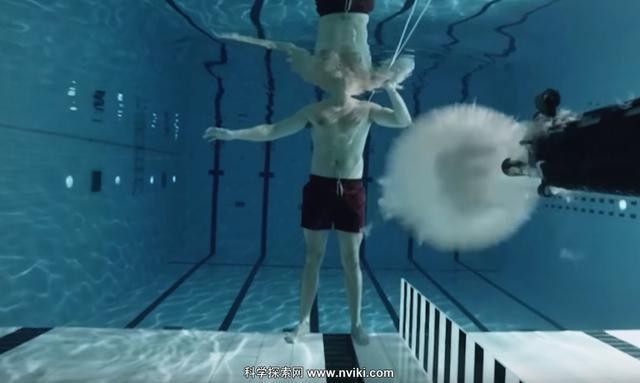 誇張的是,子彈並無貫穿瓦爾的身體,而是越飛越慢,並在幾秒後直接下墜落地。影片尾聲,瓦爾鬆了一口氣並撿起子彈,結束這場驚心動魄的實驗。報導也補充,這個離奇的現象跟槍枝無關,起因是水壓是空氣的800倍重,而且水給子彈的阻力相對較大,這導致子彈射出去就下墜,無法精準地打中目標。