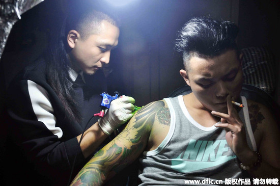 紋身前阿偉會仔細檢查工具的整潔度,再三確認不會對客人的身體健康造成損害。他說,淡季時一個月能賺4、5萬人民幣,旺季的時候一個月10多萬人民幣。不過,這些都不會影響他對紋身的熱情和初衷。