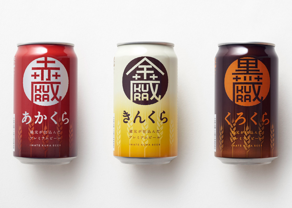 Nendo為位於日本岩手縣的Sekinoichi啤酒廠,接下新款精釀啤酒「KinKura」命名、Logo到包裝的全部設計,以此表達對在311大地震時,飽受摧殘的岩手縣的實質支持。「KinKura」精釀啤酒的命名是「黃金寶藏」的意思,有皮爾森啤酒(Aka)、淡啤酒(Kin)和黑啤酒(Kuro)三種口味,Nendo將名稱的「藏」字,與英文拼音字母巧妙組合,作為Logo的統一識別基本形,再分別與三種啤酒口味的名稱「赤」、「金」、「黑」漢字與英文結合,成為宛如日本「家徽」的圖案,瓶上顯眼的色彩搭配,也是相對應每個口味的釀酒方式。Nendo為「KinKura」精釀啤酒設計出具區別性、又有系列感的包裝設計,也為自己再創一經典!
