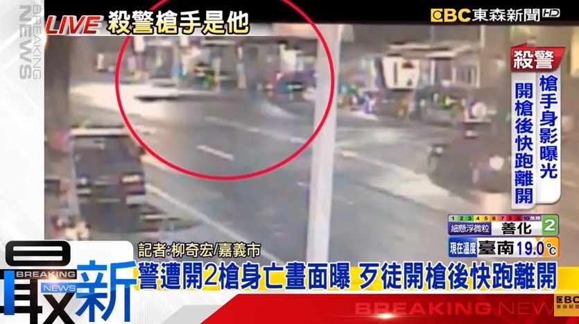 嘉義一名46歲的保安隊林姓員警昨天(29日)晚間10點多,在太太開的藝品店外遭人用霰彈槍開2槍,左上腹中彈,最後宣告不治,歹徒趁亂逃走,警方在現場找到3枚疑留彈殼,現在街頭監視器畫面曝光,也拍下歹徒埋伏店外的身影,將全力追查,而警政署長陳國恩聽聞震怒,「要求基層全力緝凶!」