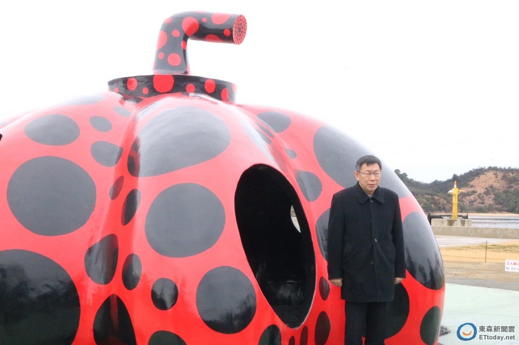 ▲柯文哲認出直島上的草間彌生作品,讓媒體好驚喜。(圖/記者張暐珩攝)