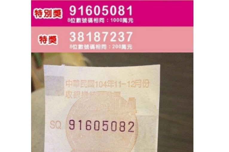 從照片上可見,這張是104年11到12月份的發票,上面的號碼為「91605082」,就差當期特別獎1個號碼,1000萬高額獎金就這樣無緣說再見了。不少人看到這是在加油站消費的發票,不僅感嘆「早知道就插隊了」。