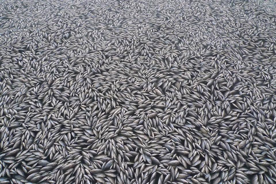 嘉義布袋鹽田濕地29日甚至出現驚人魚屍海,由於上週末寒流帶來的低溫造成許多魚類凍死,但魚屍在近日回暖後才浮上水面,上萬隻死魚翻肚至水面上的畫面也令人擔憂,由於魚屍早已腐敗,連帶連以這些魚群為時的鳥類都將面臨缺乏食物的生存危機。