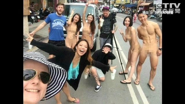 ▲全裸男女墾丁逛大街?遊客看傻眼。