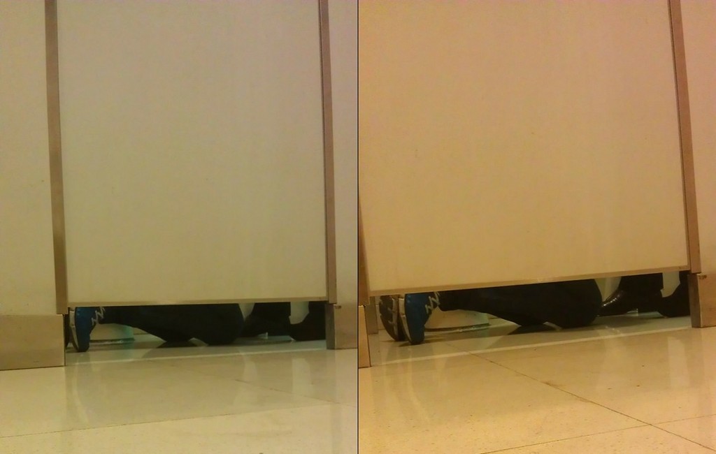 照片傳上網,吸引網友爆量討論,許多人發揮Kuso本事猜測狹小的廁所能幹嘛,「左邊那個應該是做錯事在道歉」、「他們在求婚」、「音樂系學生好認真喔,上廁所都不忘要練習」、「有吸麵條的聲音嗎」、「人獸馬在變身,出來就是兩個人了」、「只是在撿肥皂而已」、「在廁所吃東西,小心拉肚子。」