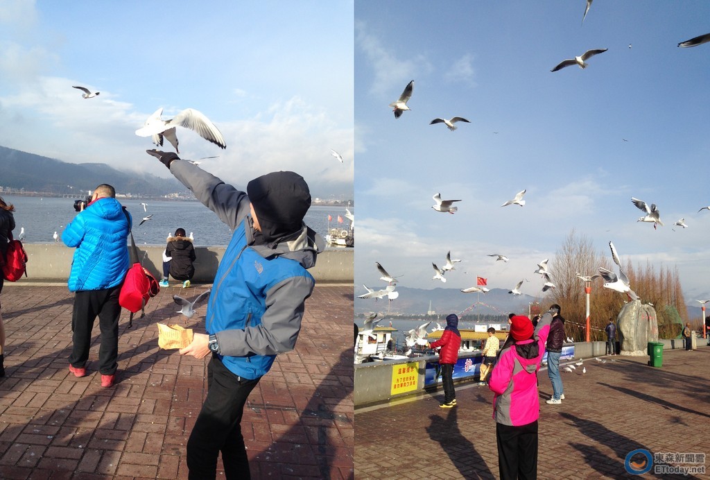 ▲滇池旁的海埂大壩是最佳的觀鷗點,能看到許多遊客在這裡餵紅嘴海鷗。(圖/記者林子桓攝,下同)