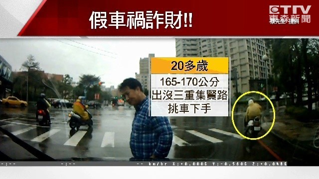 據了解,該名騎士年約20多歲、身高介於165到170公分,出沒在三重集賢路,專挑車子下手,由於大多數的人都想花錢消災私了,但記住千萬要報警,因為你可能遇到詐騙。